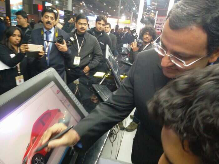 February 09, 2016, 16:20 ISTTata Group Chairman Cyrus Mistry trying his hand at making the car look good.